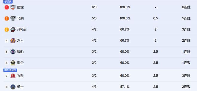 • NBA最新积分榜:雷刺不败,湖人第4,火箭第7,勇士连败下滑第8
